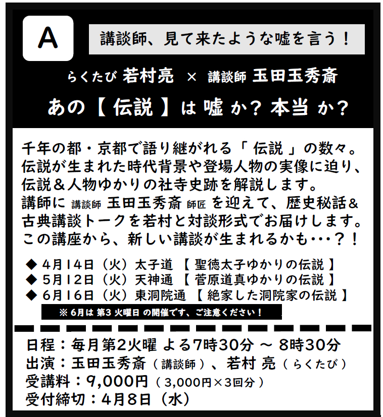 【オンライン講座】A≪講談師、見て来たような嘘を言う≫らくたび 若村亮 × 講談師 玉田玉秀斎 あの【伝説】は 嘘 か? 本当 か?
