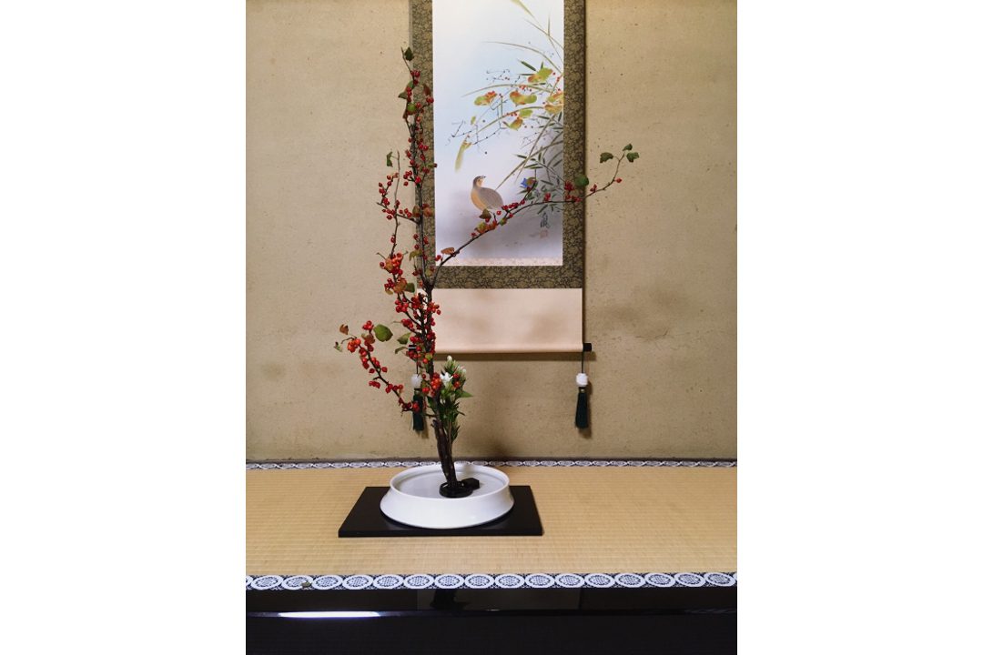 内用は陰陽合体の花で円相体に生けるため、祝儀の花としても生けられます。