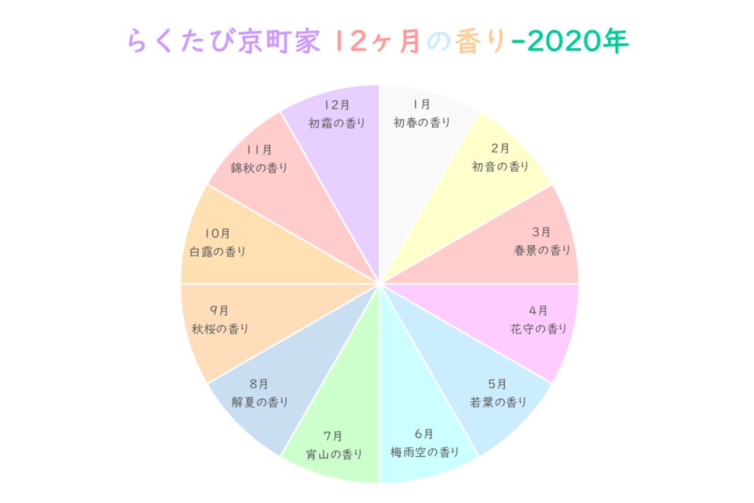 らくたび京町家では、毎月その月のイメージにあったお香を焚いて、日々お客様をおもてなししています。 らくたび京町家で焚いている「今月のお香」を月替わりでご紹介いたします。