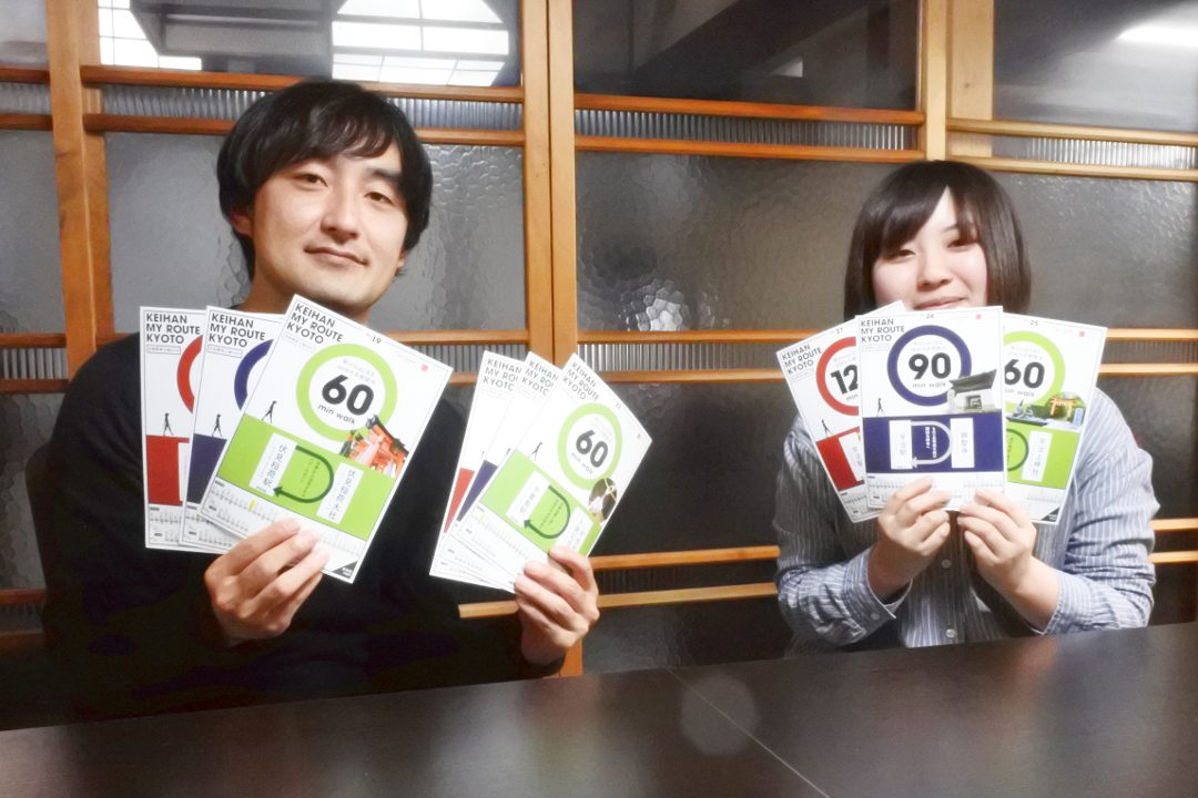 福:90分は3000系、120分は8000系、60分のグリーンはそれ以外の通勤車のカラーですね。とにかく捨てられないマップを目指そうということで、その辺りのデザインにもこだわりました。何なら各駅のマップを集めてコレクション化していただいて・・・。見どころ豊富な京阪沿線で自分ならではの楽しみ方を見つけてもらう・・・。