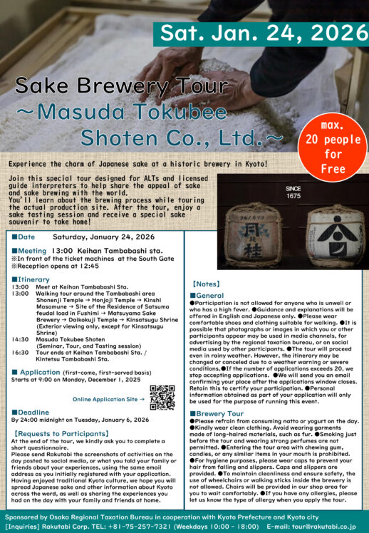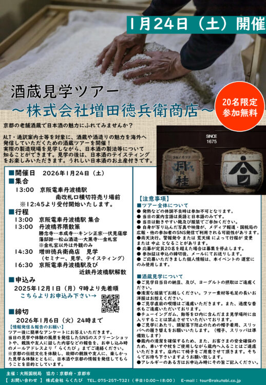 在日外国人に対する ≪ 酒蔵見学ツアー ≫ 参加者の募集について